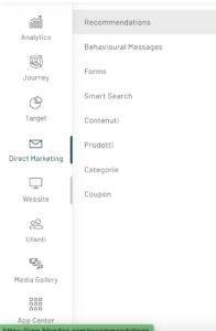 Starting from the menu on the left, click on Product Recommendation and choose a type of page (of your choice).