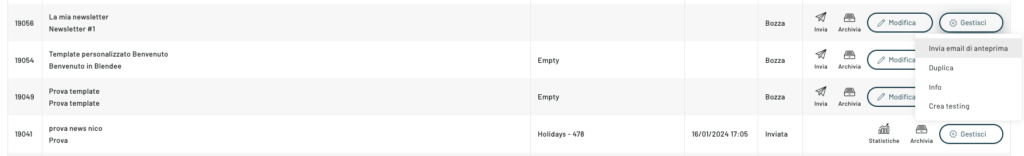From the items available in the “Manage” section, you can select “Send preview emails“.