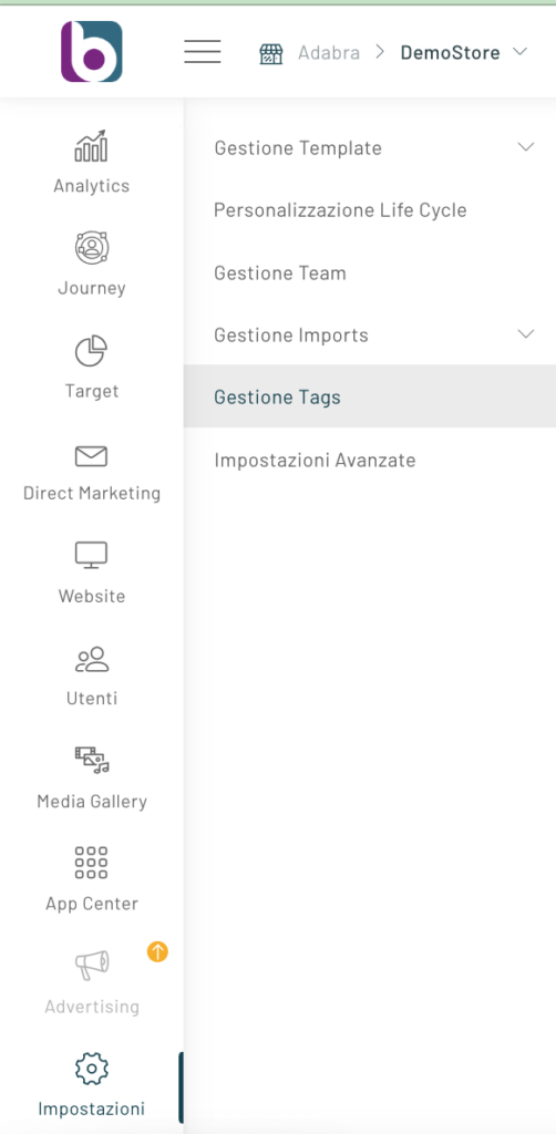 Within the import lists (Automatic or manual) you can insert the tags you want to associate with users. These tags will then be made available by the platform and can also be associated with other users already present or that you will upload later.