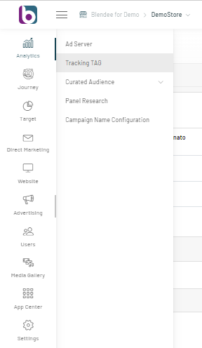 To create a tracking tag for users viewing your site, simply select “Advertising” in the main menu and then “Tracking TAG”.