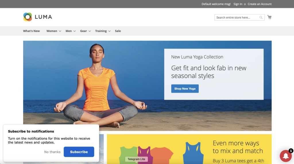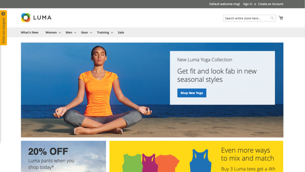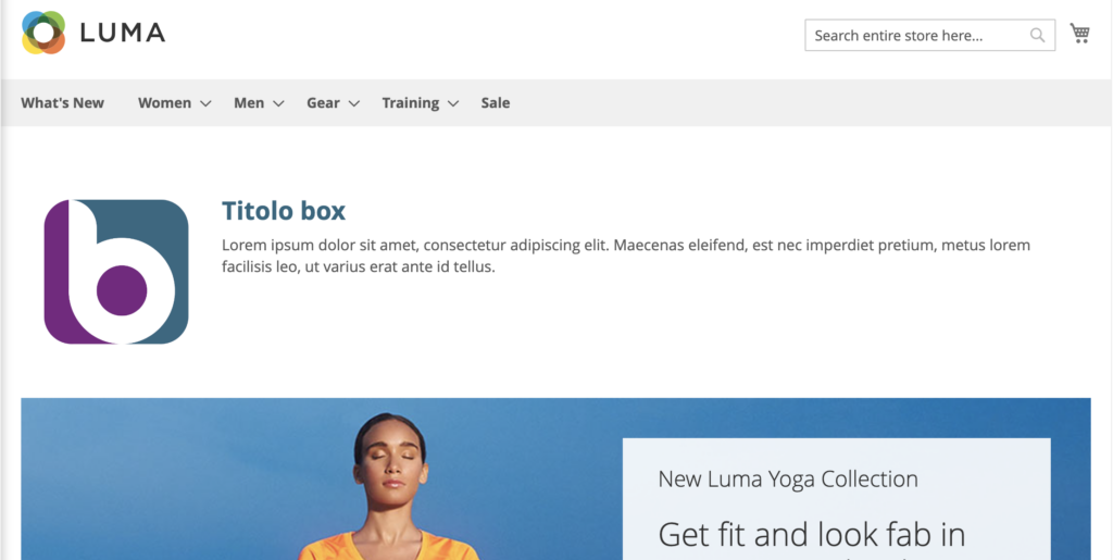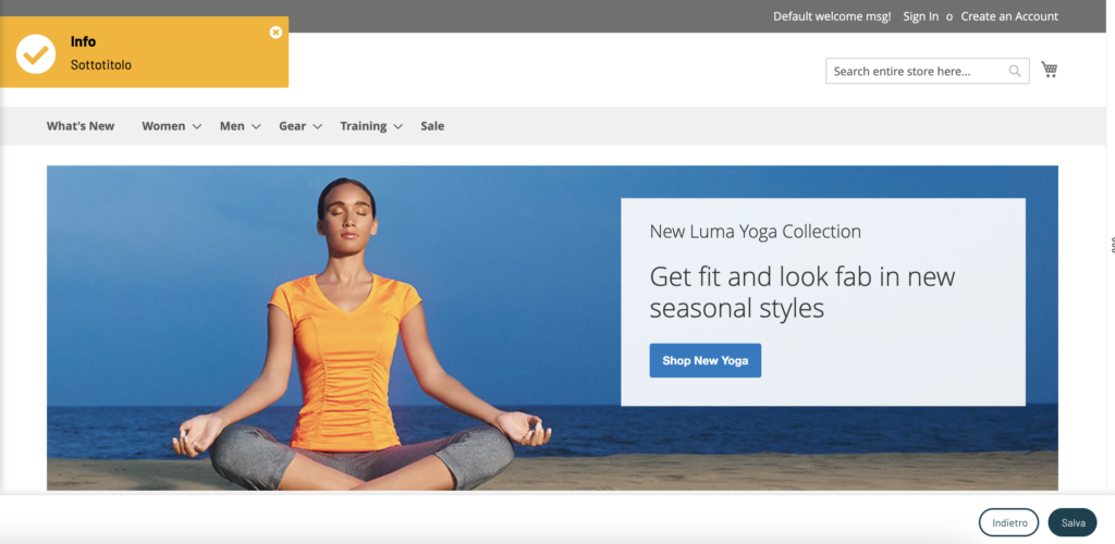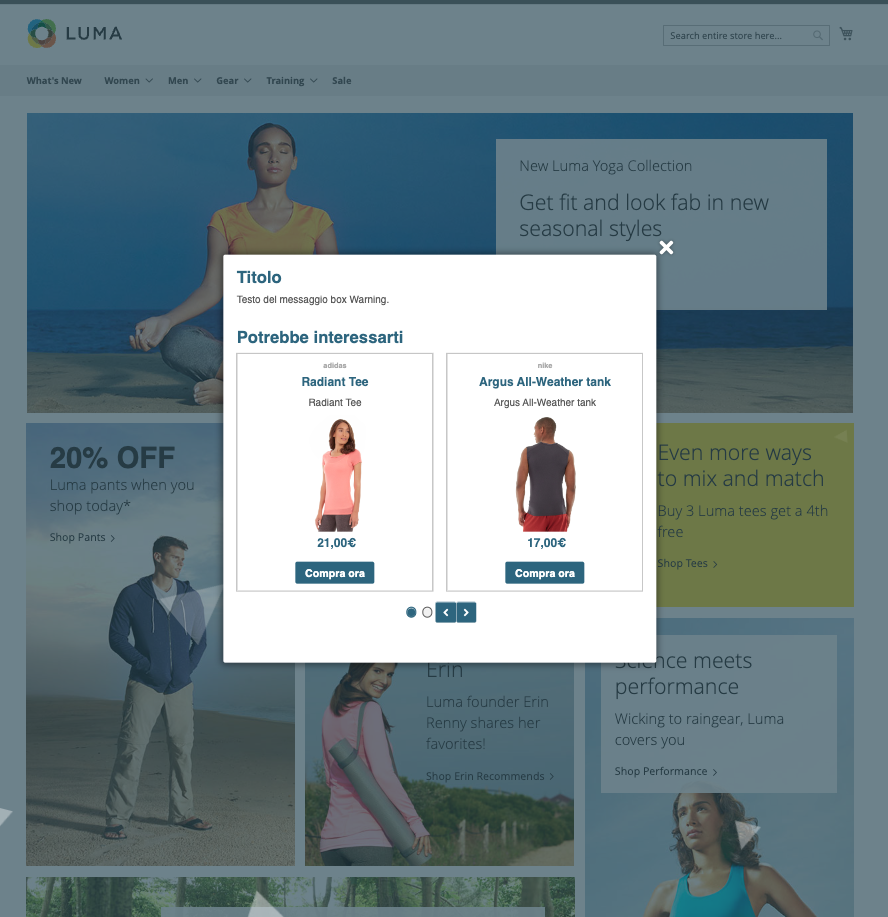 Template per behavioural message in stile picture in picture: ridimensiona la pagina e mostra sullo sfondo, o soltanto un’immagine, o un carosello contenente le raccomandazioni prodotto che può essere disposto in riga o colonna
